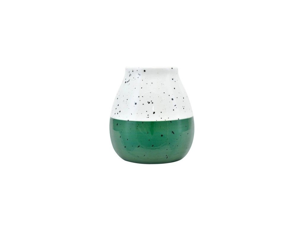 Vychutnejte si maté z keramické kalabasy Papagayo, která spojuje autentický design s praktičností. Odolná, snadno udržovatelná a perfektně tvarovaná pro pohodlné pití.Tvar nádoby je inspirován tradičními jihoamerickými kalabasamy. Glazovaná zvenku i zevnitř. Pokrytá světlou glazurou a zdobená černými, nepravidelně skvrnitými vzory. Na dně má stylový výřez v zelené barvě. Designové matero na pití yerby maté skvěle doplní výbavu každého mateisty!
