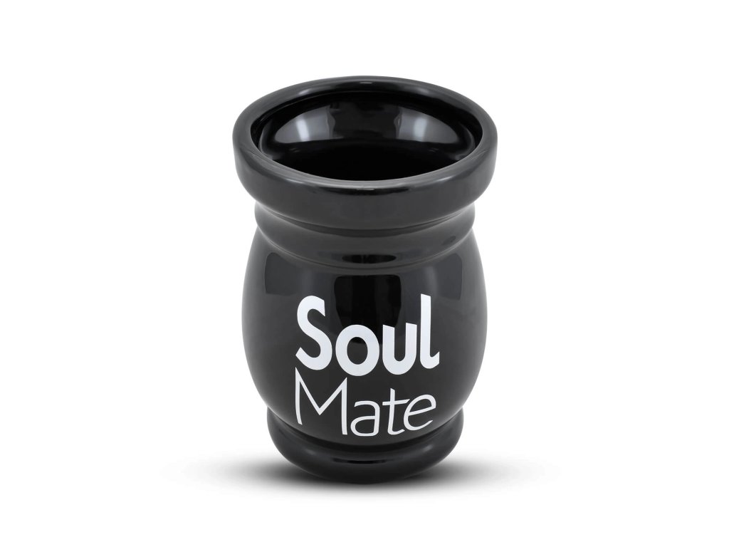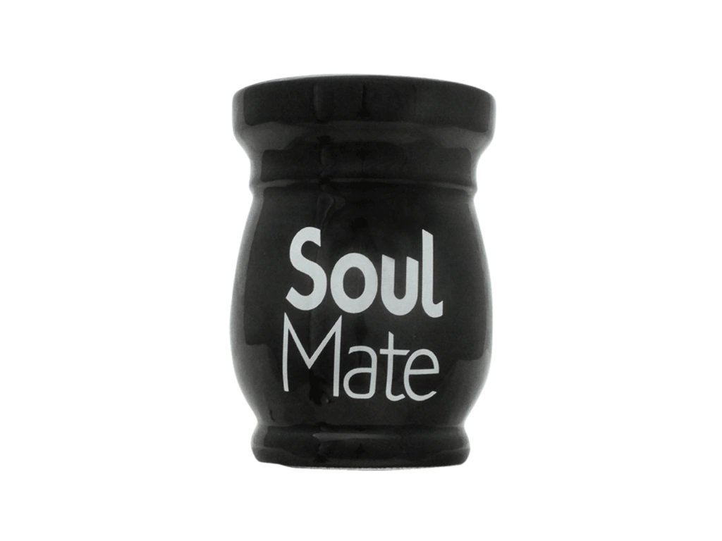 Keramická kalabasa Santos s nápisem Soul mate v moderním provedení. Praktická, pevně vyrobená nádoba na yerbu maté o objemu přibližně 250 ml.